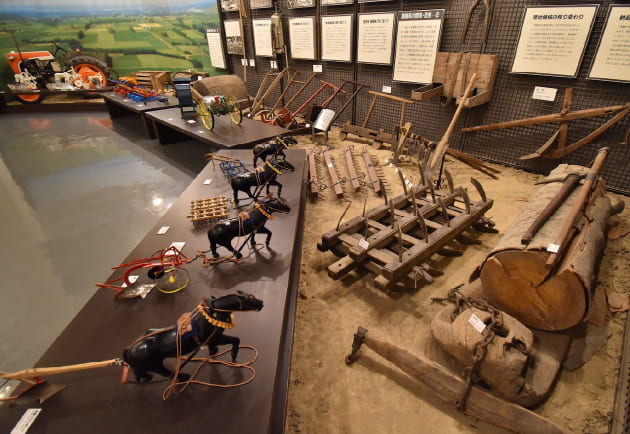 帯広・十勝の自然や人、文化、先住民(アイヌ民族)の歴史、開拓期の十勝の自然や人々の生活、農機具類の開発と改良から冷害問題、収穫物などの展示から、日本一の農業王国への変遷について学びます。