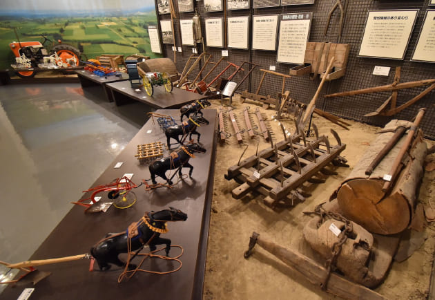 帯広・十勝の自然や人、文化、先住民(アイヌ民族)の歴史、開拓期の十勝の自然や人々の生活、農機具類の開発と改良から冷害問題、収穫物などの展示から、日本一の農業王国への変遷について学びます。